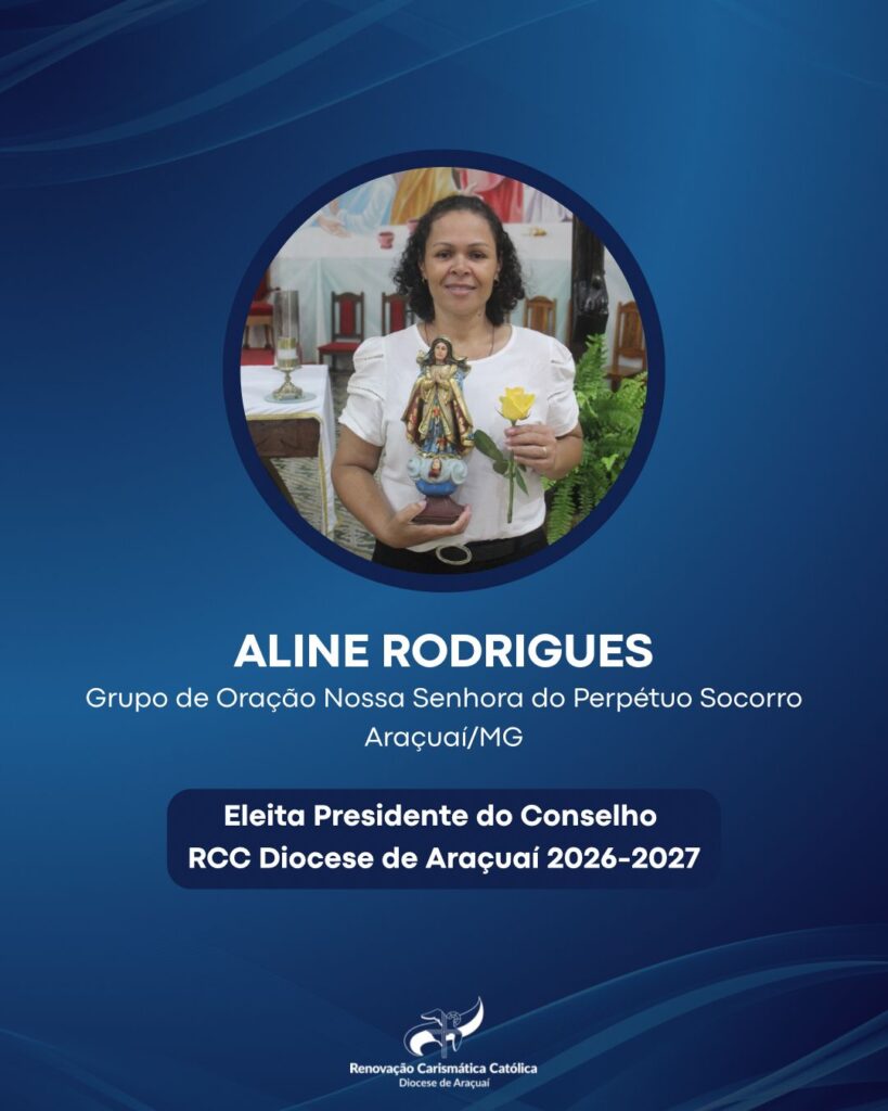 Segundo Pe. Sebastião Tiago, “neste tempo de discernimento e oração, o Conselho Diocesano, reunido em Assembleia e guiado pelo Espírito Santo, elegeu aquela que conduzirá o Movimento nos próximos anos (biênio 2026-2027). Com gratidão e esperança, acolhemos Aline Rodrigues, do Grupo de Oração Nossa Senhora do Perpétuo Socorro, da cidade de Araçuaí- MG, que assume esta missão de serviço e amor à Igreja”.