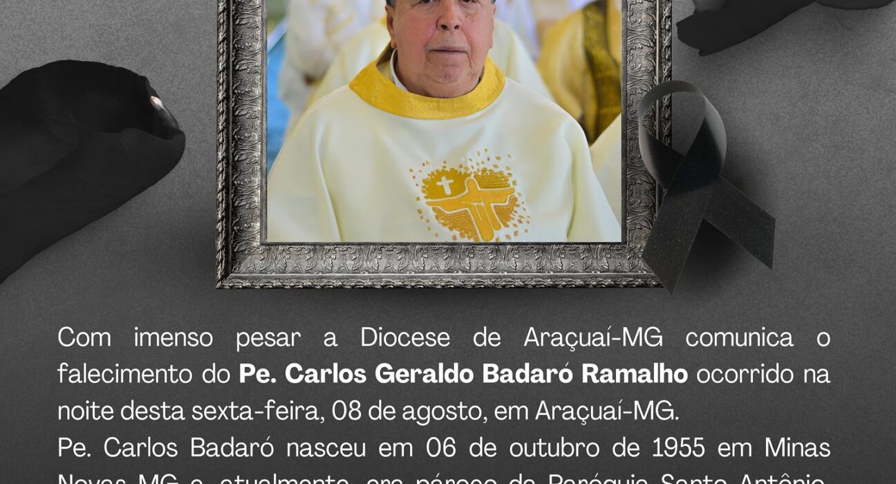 Com grande pesar, a Diocese de Araçuaí- MG comunica o falecimento do Padre Carlos Geraldo Badaró Ramalho. Sua partida ocorreu na noite da sexta-feira (08), aos 69 anos. Natural de […]